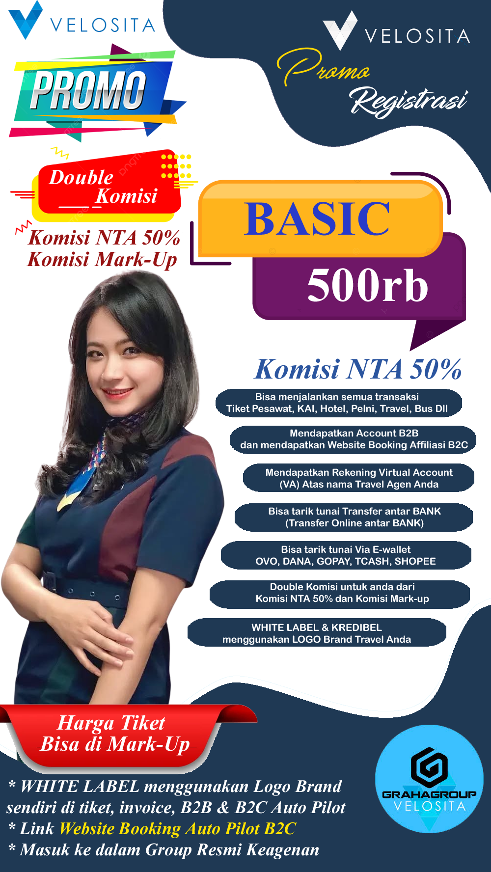 Dan masih banyak lagi maskapai Domestik (Lion Air, Batik Air, Super Air Jet, Wings Air, Garuda Indonesia, Citilink, Sriwijaya Air, Nam Air, Air Asia dll) Juga tersedia banyak Maskapai Luar Negeri dengan berbagai rute destinasi di Velosita. Doble Komisinya (Komisi NTA dan Komisi Mark Up)